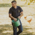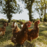 In meiner Küche verarbeite ich fast ausschließlich die Loué-Hühner. Warum? Zertifiziert durch Label Rouge, eine Mast von mindestens 82 Tagen (konventionelle Mast 30 Tage), unbegrenzter Auslauf auf riesigen Arealen mit vielen Bäumen und Naturhecken und -sträuchern. Das Futter muss aus eigenem Anbau stammen. Kein Gedöns, nur pures, nicht genverändertes Getreide. Kein Fischmehl, keine Mittelchen. Antibiotika sind strikt untersagt. Nur Behandlungen auf homöopathischer Basis sind erlaubt. Viel frische Luft, Sonne, Wind, saubere Ställe und ein strenges Hygienekonzept für Mensch und Tier. Die Hühner und auch Eier stammen alle aus biologischer, teils biodynamischer Aufzucht. Welche strengen Auflagen die Label-Rouge-Zertifizierung mit sich bringt, sieht man an der Freiheit und dem Glück der Hühner.