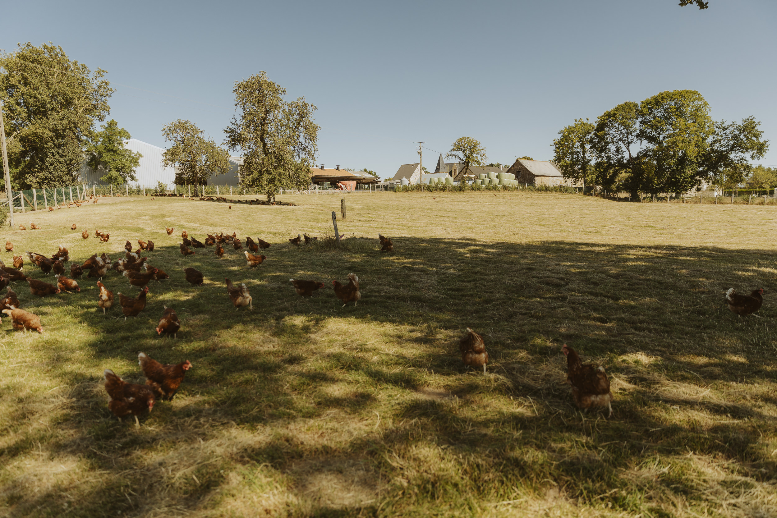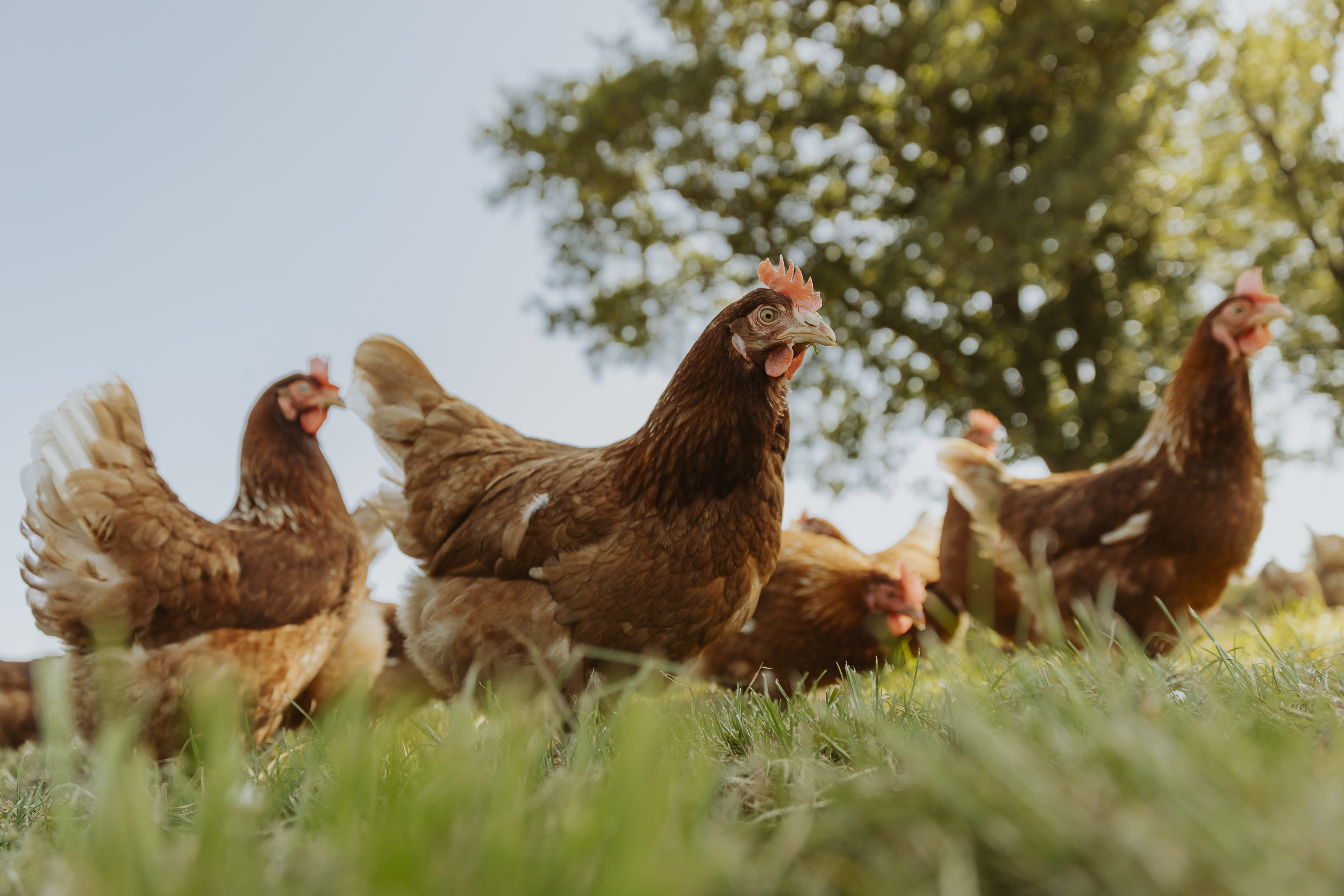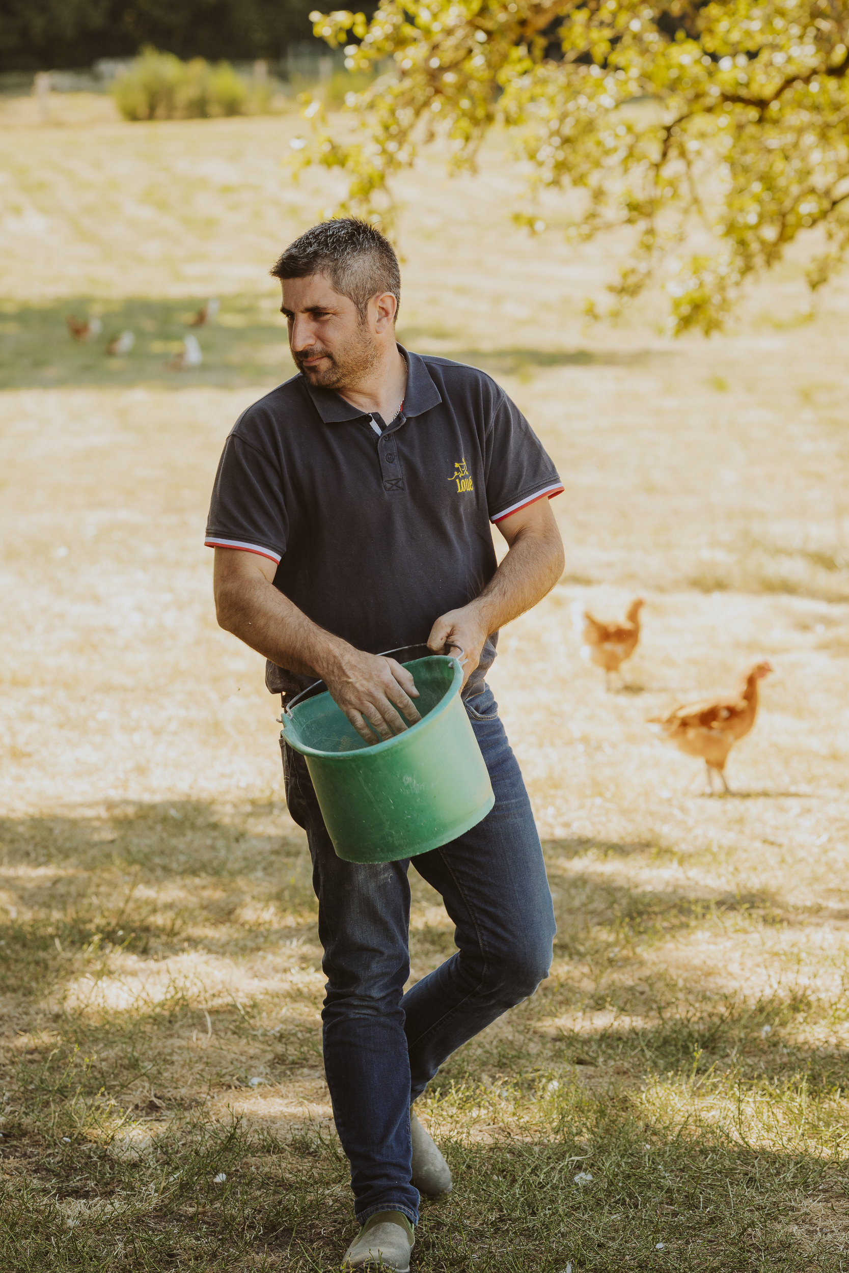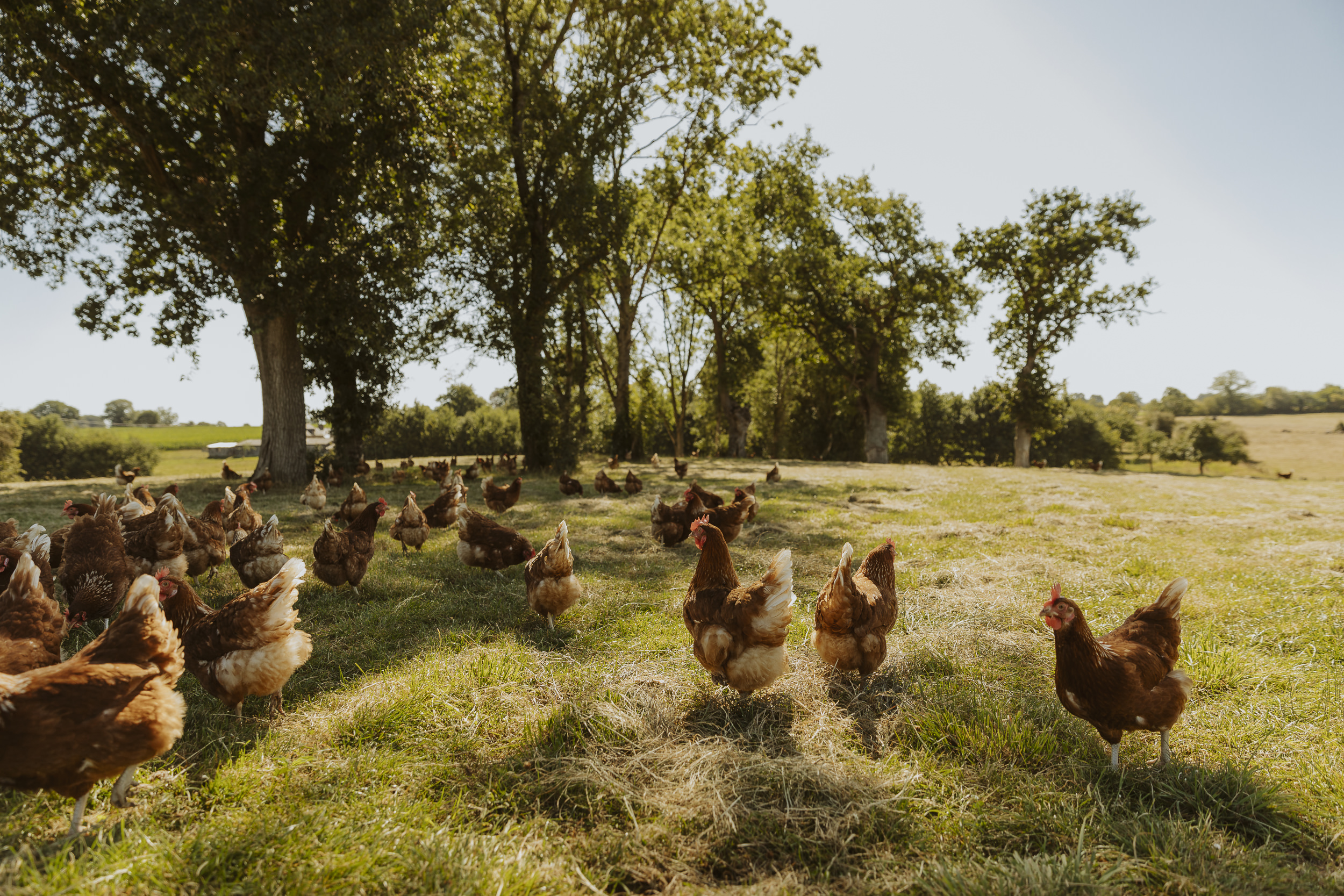In meiner Küche verarbeite ich fast ausschließlich die Loué-Hühner. Warum? Zertifiziert durch Label Rouge, eine Mast von mindestens 82 Tagen (konventionelle Mast 30 Tage), unbegrenzter Auslauf auf riesigen Arealen mit vielen Bäumen und Naturhecken und -sträuchern. Das Futter muss aus eigenem Anbau stammen. Kein Gedöns, nur pures, nicht genverändertes Getreide. Kein Fischmehl, keine Mittelchen. Antibiotika sind strikt untersagt. Nur Behandlungen auf homöopathischer Basis sind erlaubt. Viel frische Luft, Sonne, Wind, saubere Ställe und ein strenges Hygienekonzept für Mensch und Tier. Die Hühner und auch Eier stammen alle aus biologischer, teils biodynamischer Aufzucht. Welche strengen Auflagen die Label-Rouge-Zertifizierung mit sich bringt, sieht man an der Freiheit und dem Glück der Hühner.