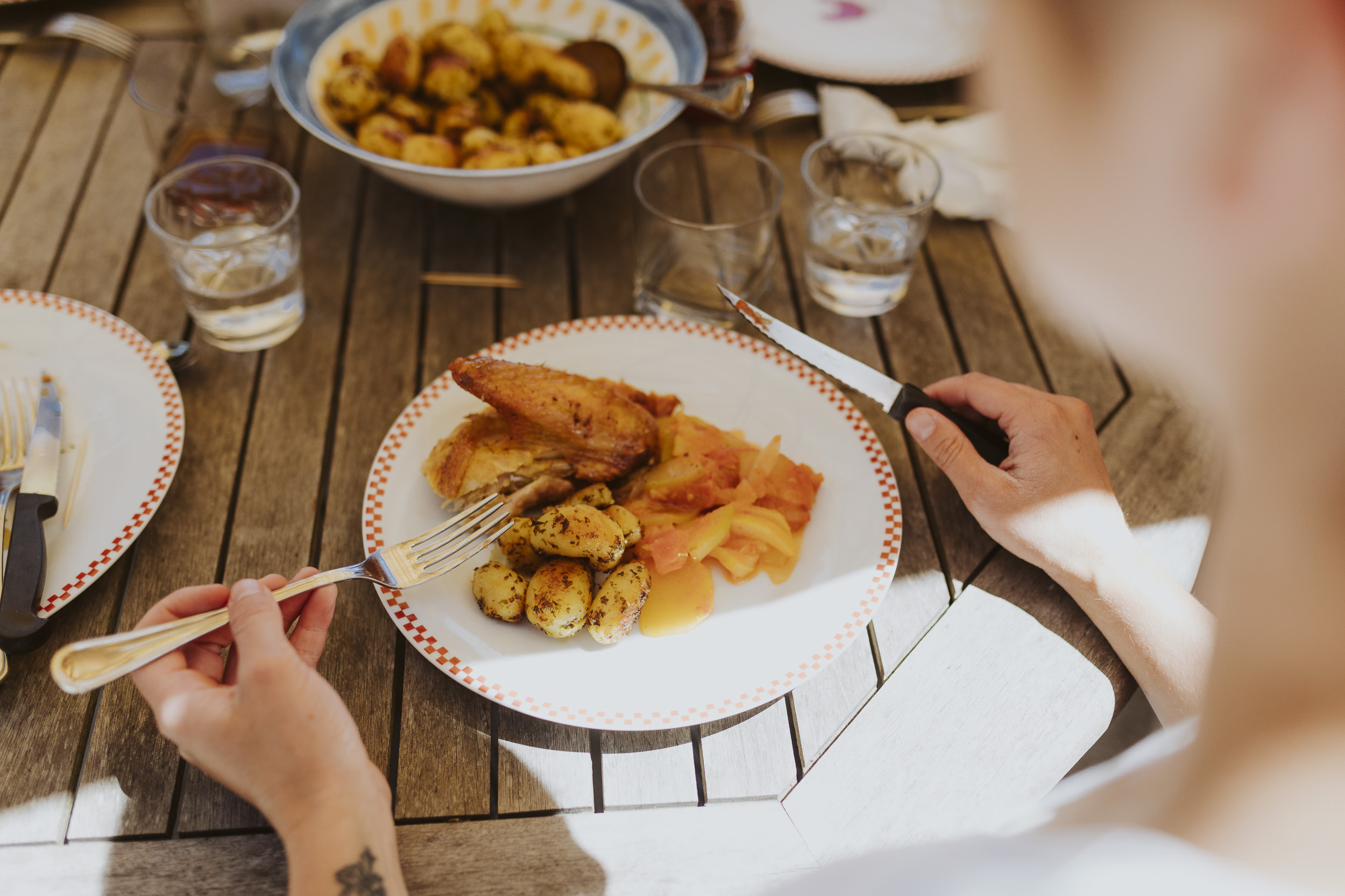Label Rouge – das klingt immer so furchtbar dekadent und teuer. Ist es aber nicht. Für ein 1,5 Kilogramm schweres Huhn bezahle ich im Durchschnitt 15 Euro. Das ist natürlich mehr als für ein deutsches Huhn aus der konventionellen Mast, allerdings werden von so einem Huhn (mit Beilagen) bis zu 4 Personen satt. Das sind gerade einmal 3,75 Euro pro Person und, um den Wortlaut meines Vaters wiederzugeben, „man frisst keinen Scheiß“. Selbst für mich alleine bereite ich immer ein ganzes Huhn zu. Aus den Karkassen entsteht mit viel Gemüse eine feine Brühe, und aus den Fleischresten bereite ich mir am nächsten Tag ein fantastisches Hühnerfrikassee zu.