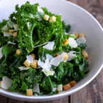 Grünkohl mal anders – nämlich herrlich erfrischend als Salat. Getoppt mit einem köstlichem Zitronen-Knoblauch-Dressing, frisch gehobeltem Parmesan und knackigen Croûtons. Ideal als Healthy Snack für zwischendurch oder als gut vorzubereitendes und schnelles Mittag- oder Abendessen.