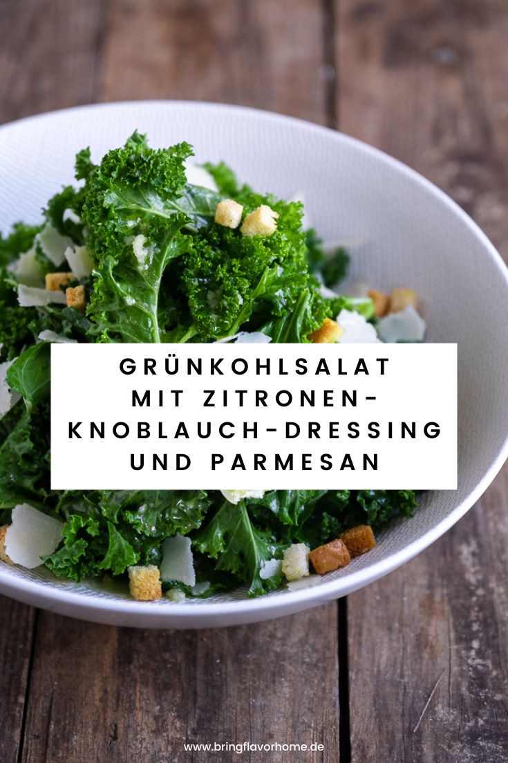 Grünkohlsalat mit Zitronen-Knoblauch-Dressing und Parmesan