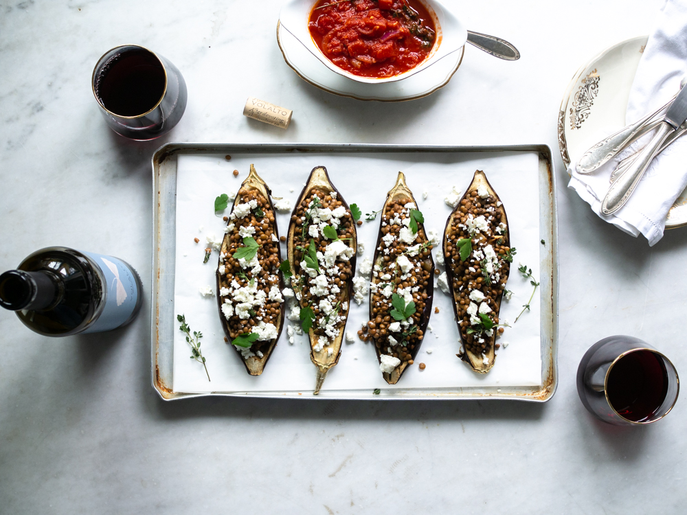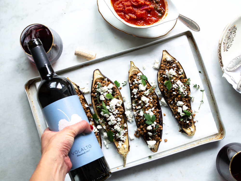 Yeahi! Crossover – Kitchen. Bei diesem Gericht mischen gleich drei Länder mit: Italien, Israel und die Türkei. Und da zu Tomatensauce am besten, leichte bis mittelschwere Rotweine passen, packen wir Spanien auch noch dazu und matchen das Ganze mit einem leichten, süffigen Monastrell aus Spanien. Super einfaches Gericht für laue Sommerabende, als Vorpeise oder den kleinen Hunger. Mit Baguette, Salat und Rotwein, wird dass zu einer herrlich gemütlichen Runde. Das Gericht lässt sich easy – peasy im Vorfeld zubereiten. Kurz vor dem servieren, einfach noch einmal 5 Minuten in den Ofen schieben!