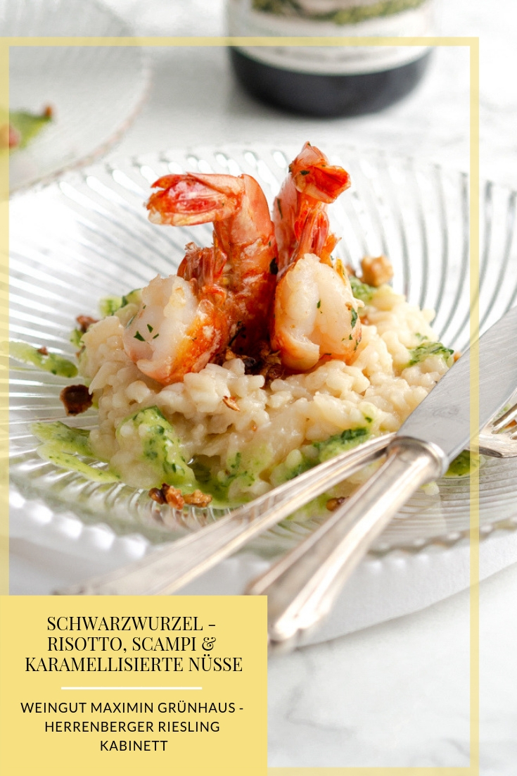 Ideal als Vorspeise, Beilage oder vegetarisches Hauptgericht. Wichtig, ist der passende Wein! Die cremige Textur des Risottos, kann ruhig ein bisschen Säure in Form von Wein vertragen. Versuche es mal mit einem Riesling, Weißburgunder oder einen leicht gekühlten Spätburgunder. Aufgrund der karamellisierten Haselnüsse und der leichten Süße der Schwarzwurzeln, habe ich mich für einen Riesling Kabinett entschieden. Er spiegelt die süßen Nuancen wieder und wiegt mit seiner tänzelnden Säure, alles ins Gleichgewicht. Worauf wartest du noch? Schwing dich an den Herd und begeistere deine Liebsten! Und das Beste ist, du benötigst maximal 30 Minuten an Zeit!