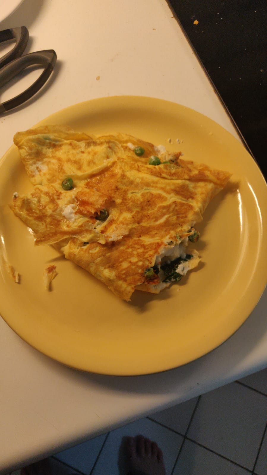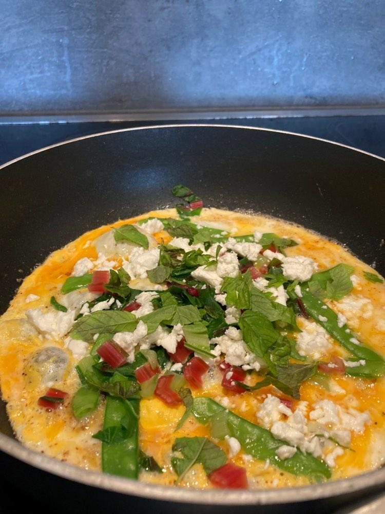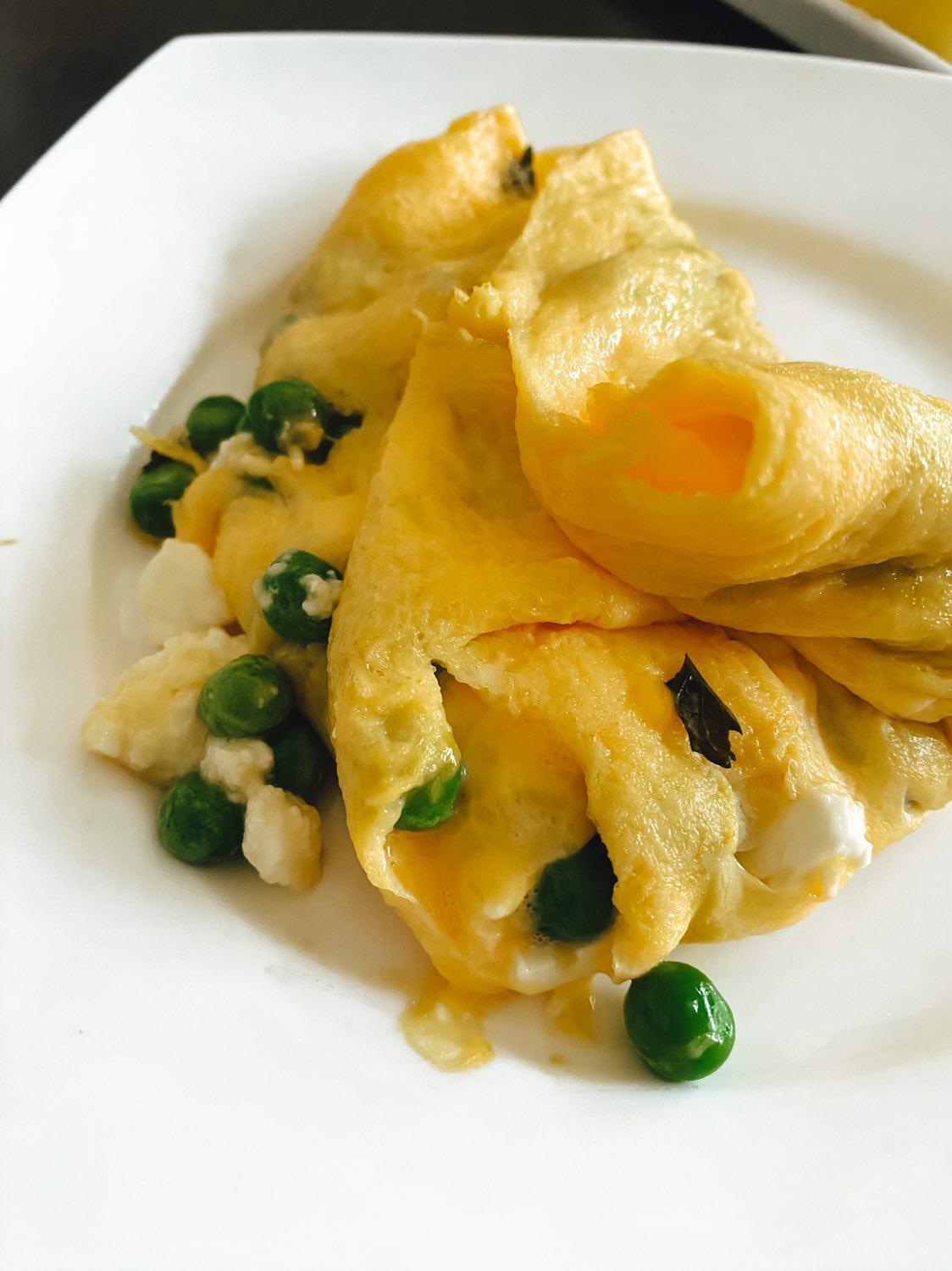 Super schnelles Omelett mit Feta, süßen Erbsen und Minze